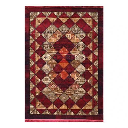فرش ماشینی 700 شانه فرش هیوا زمینه قرمز لاکی حاشیه لاکی مدل 203